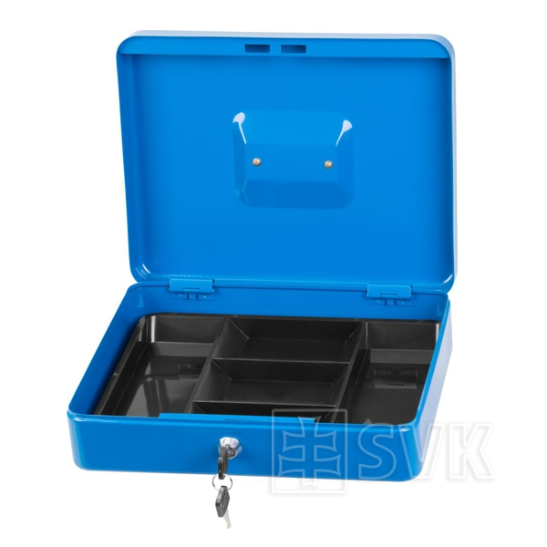 Kovová skrinka na peniaze. Skrinka CashBox s rozmermi 300x240x90 mm je ideálna na bezpečné ukladanie hotovosti a cenností. Je vyrobená z kvalitného materiálu a zabezpečí vaše peniaze pred neoprávneným prístupom. S dodatočným zámkom je vaša hotovosť v bezpečí a môžete mať pokoj v každej situácii.
